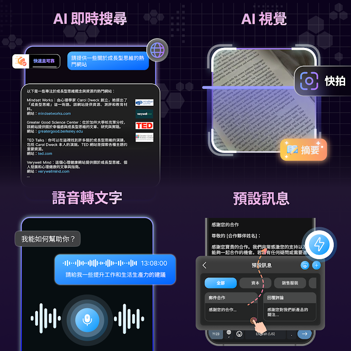 - AI鍵盤助理 – 提供智慧建議,提升打字效率