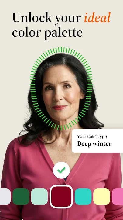 使用 AI 色彩類型分析,解鎖您的個人色彩搭配和穿搭指導。 Stylio 透過分析臉部和色彩來識別您的季節,並使用我們的智慧色彩辨識器和色彩產生器,立即為您呈現最合適的色彩。您還將獲得量身訂製的妝容、配件和全彩盤推薦,助您每日展現自然美。