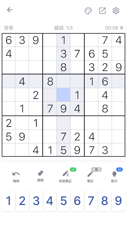 ✓ 反白顯示重複項,可避免在一行、一列或一個方塊中重複數字