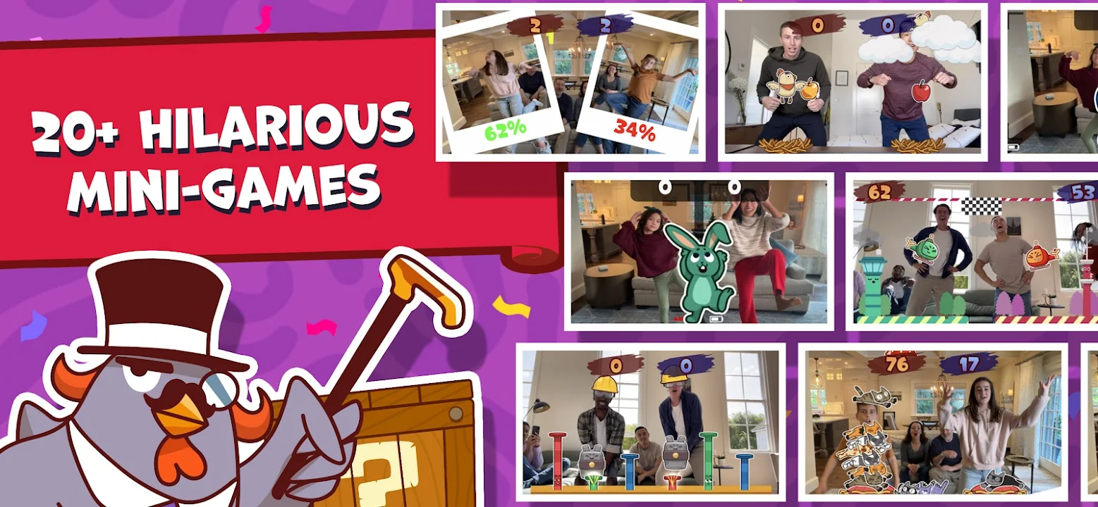 With a large collection of mini games that’s constantly expanding, everyone has a chance to reign supreme or make a total fool of themselves. Each game is as goofy and chaotic as the next. Whether it’s Cat Stack, Viking Volleyball or Cookie Catastrophe, Party Fowl has something for everyone!