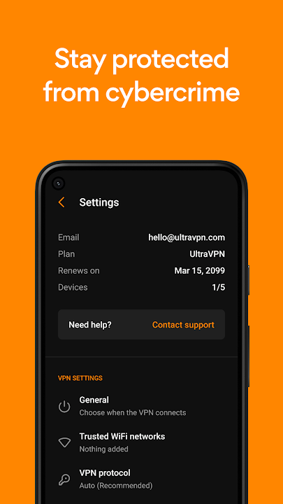 Ultra VPN allows you to change your device's location and IP address to countries and cities all over the world. In addition to changing locations, Ultra VPN provides secure military-grade connections from anywhere in the world. Eliminate cyber threats and stay safe online,