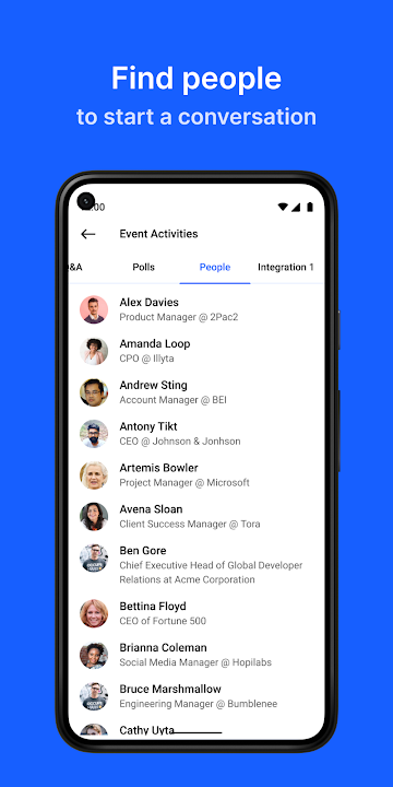 透過 RingCentral Events 應用程式結識新朋友並建立聯繫。查看與會者和參展商名單、聊天、視訊通話,並與世界各地的他們聯繫 - 無論您是親自參加還是虛擬參加。