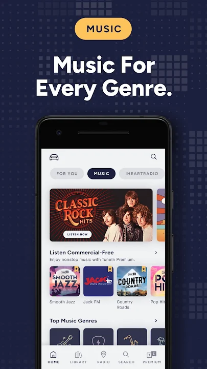 Commercial-Free Music: Stream your favorite music stations non-stop with no ads.