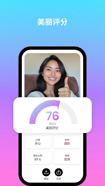您可以将结果保存在照片库中,或在社交网络上与家人和朋友分享照片。