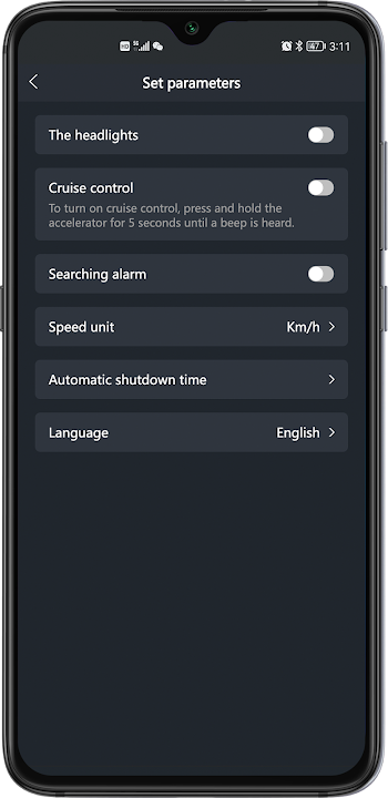 電動滑板車APP用以操作電動滑板車的功能