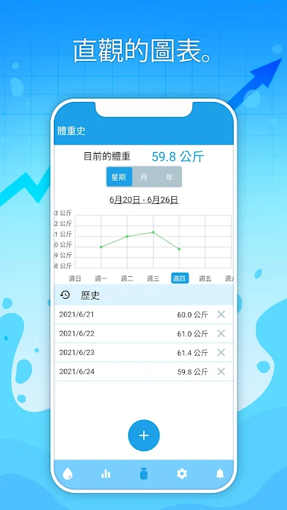 -個性化目標該應用程序會自動計算您特別需要飲用的水量,並考慮您的性別和體重,並且會根據天氣條件和您的身體活動進行調整。您將不必花費寶貴的時間進行研究,我們已經為您完成了所有艱苦的工作!