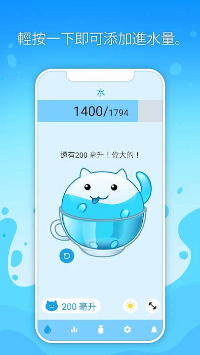 -動機 Watercat 將分享喜悅,慶祝您的成功並稱讚您,此外,它還將您的記錄添加到簡單的表格中並記錄您的進度!
