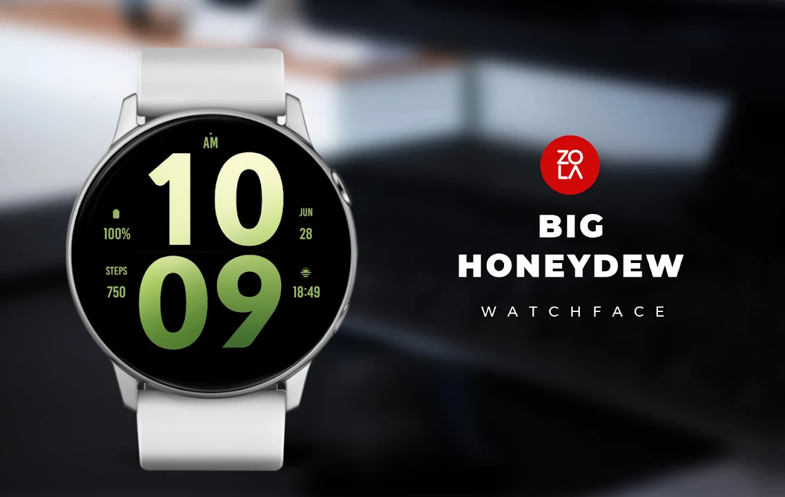 適用於 Wear OS 的 Big Honeydew 錶盤,超大數位錶盤,設計精美,注重易讀性和易用性。