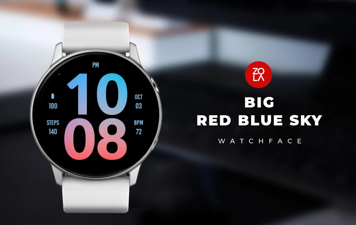 适用于 Wear OS 的大红蓝天表盘,超大数字表盘,设计精美,注重易读性和易用性。