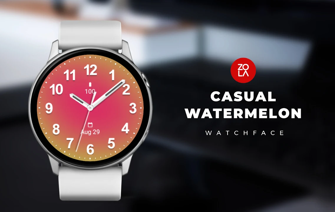 Casual Watermelon Watch Face for Wear OS, beautiful analog watch face made with casual design focus on legibility and usability.