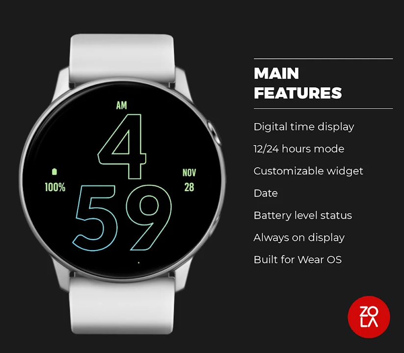 Stylish and customizable watch face designed for Wear OS smartwatches