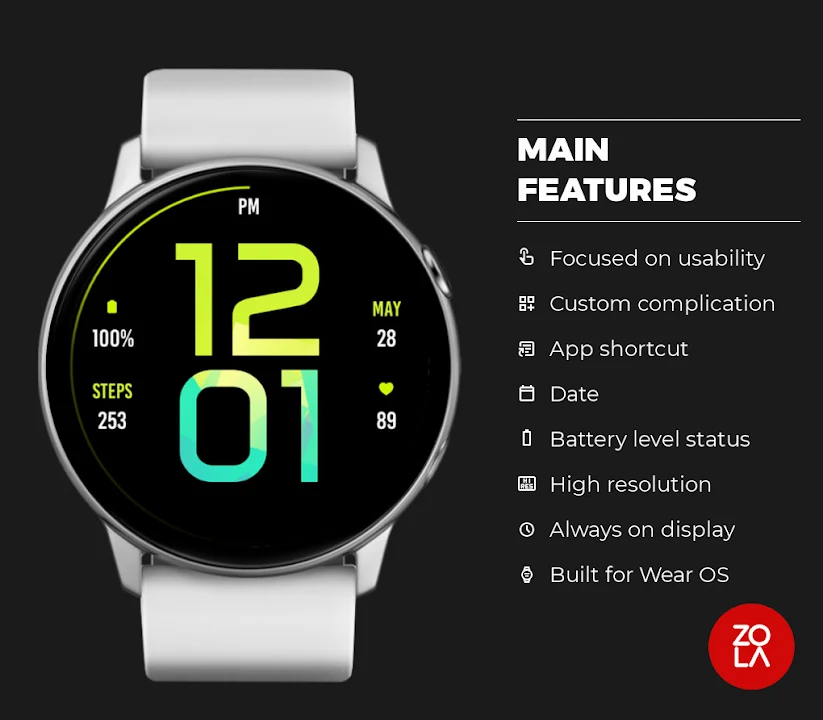 Rock a modern look with the Great Green Watch Face! This sleek Wear OS digital watch face is stylish, fresh, and perfect for anyone who wants a pop of green on their wrist.