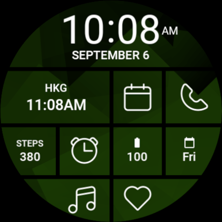 Green Black Tile Watch Face for Wear OS, a stylish and customizable watch face that features a sleek green and black design.