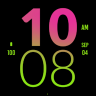 適用於 Wear OS 的綠粉紅色大錶盤,精美的數位錶盤採用大而簡潔的設計,專注於易讀性和可用性。