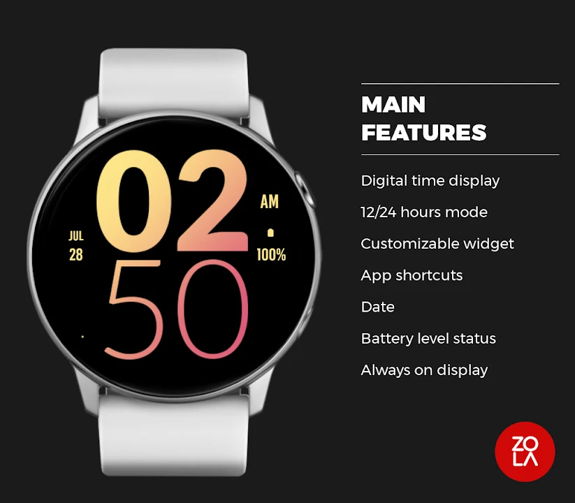 Beautiful digital watch face for Wear OS