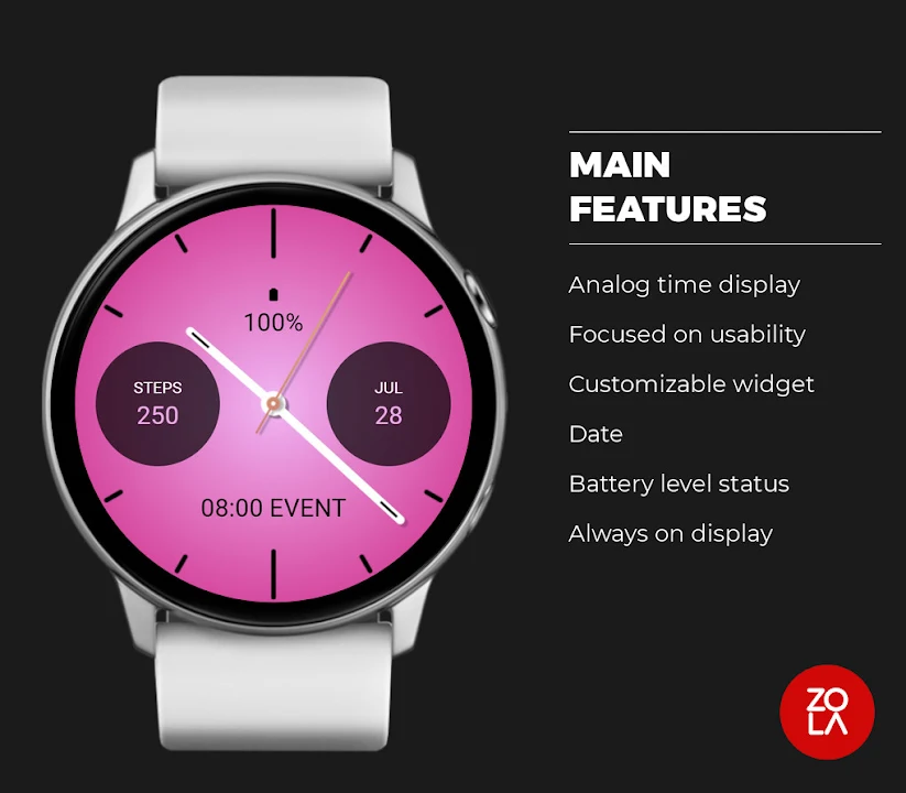适用于 Wear OS 的 Pink Rose Fit 表盘,精美表盘采用时尚设计,注重易读性和易用性。
