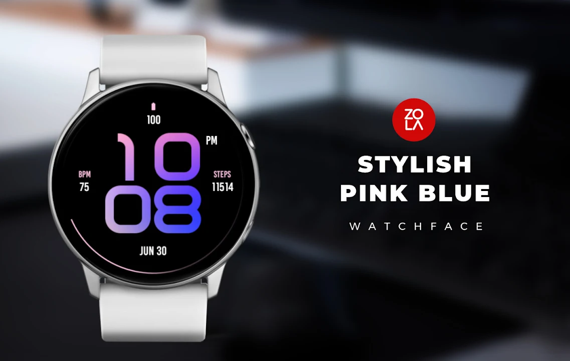 Elevate your style with the Stylish Pink Blue Watch Face for Wear OS, designed to seamlessly blend fashion and functionality. This vibrant watch face features a stunning combination of pink and blue hues, ensuring you stand out while keeping track of time effortlessly.