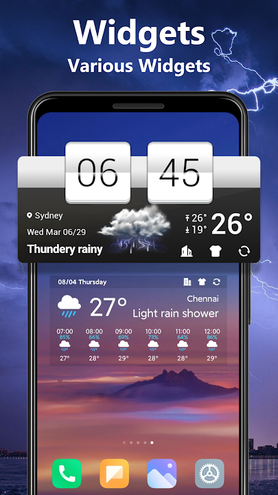 非常准确详细的天气应用程序,带有实时天气雷达和各种风格的天气小部件