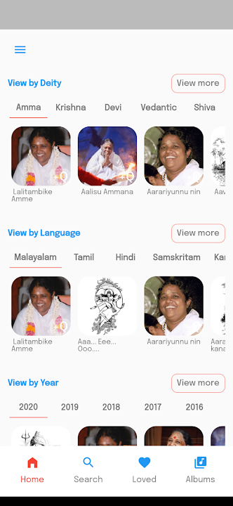 一次訪問所有 Amma 的巴贊。Bhajans 依神、語言、年份、專輯等分類。您可以個性化外觀和感覺並標記您最喜歡的歌曲。訂閱任何可用的自動續訂或一次性付款選項,並從今天開始享受 Bhajans。