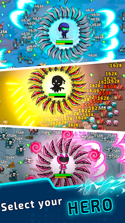 The sci-fi rogue-like game is full of stunning graphics and immersive gameplay, and you’ll dive into a universe filled with breathtaking celestial landscapes and treacherous alien sceneries. Neon Survivor is sure to keep you on the edge of your seat! Your journey as a sci-fi survivor will see you cross paths with a plethora of unique characters, hordes, and creatures. Each being you meet adds depth to the story, bringing with them their own unique abilities and backstories. These interactions are pivotal in shaping your path of hero survival.