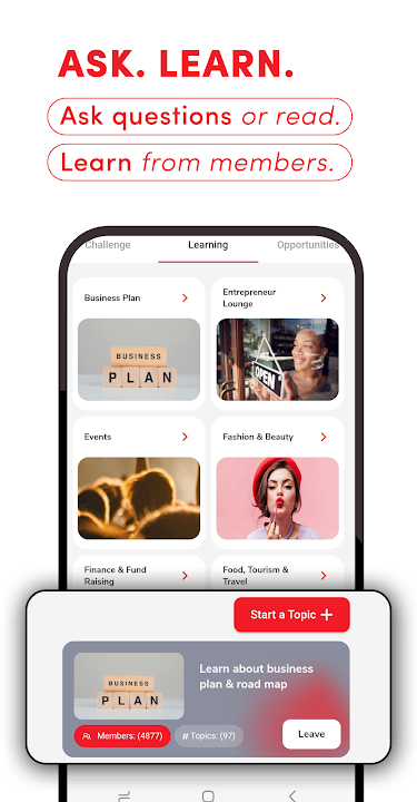 Confused or need feedback? Ask questions on interest-based topics. Want to learn how to grow your business? Check our learning section. Want to increase earnings and profit? Check the opportunities section. Here are the full features in detail on our online networking business app.