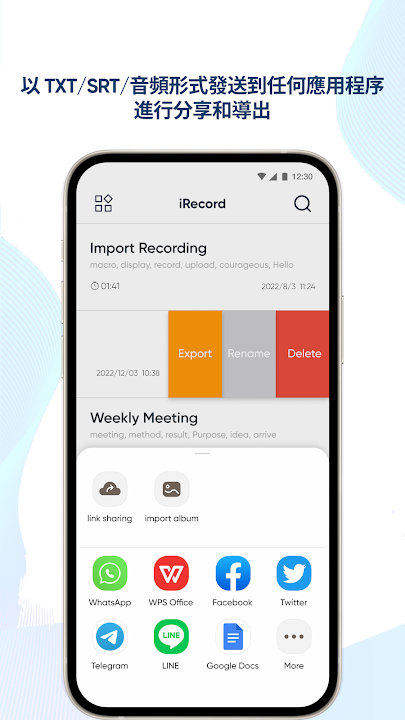 * 通過 What's App、Messenger 等分享錄音和成績單。