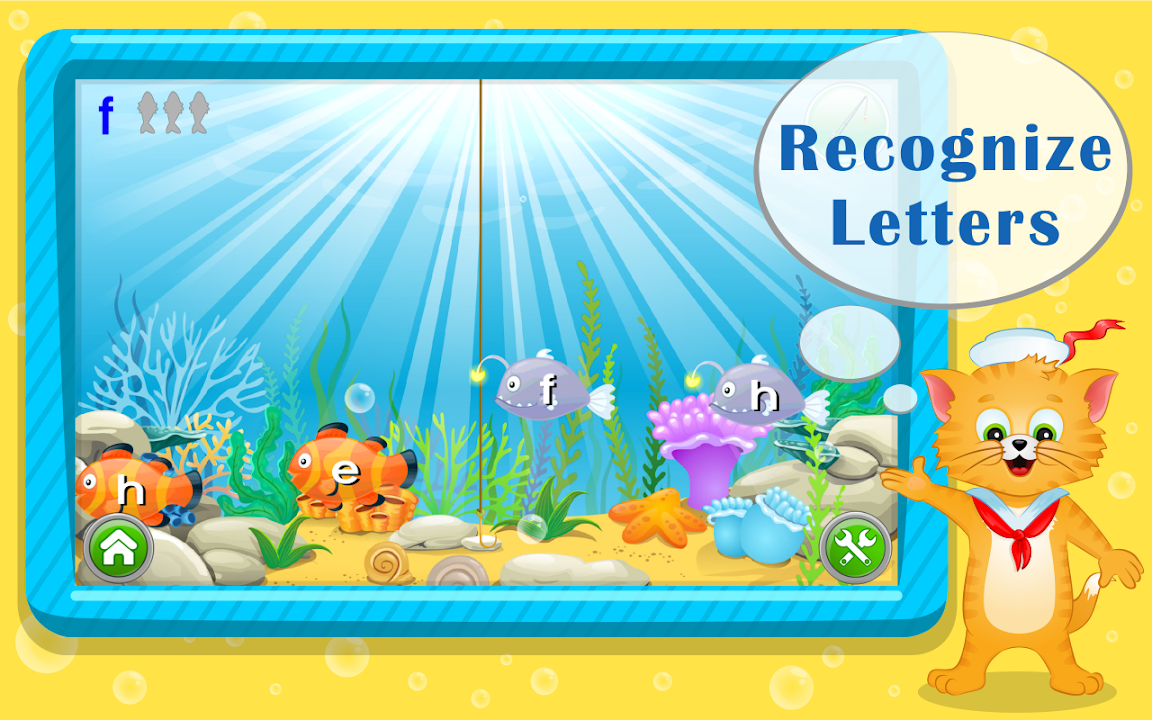✔ Recognizing Letters: Fishing for alphabet fish as they swim by reinforces letter familiarity and its pronunciation.